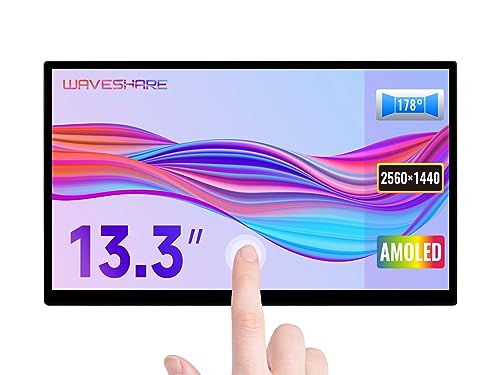 Waveshare 13.3inch 2K HDMI AMOLED Capacitive Touchscreen, 2560x1440 Pixel, with Hi-Fi Speaker, Up to 10-point Touch, compatible with Raspberry Pi 4B&CM4/Jetson Nano/Tinker Board/Windows 11/10/8.1/8/7