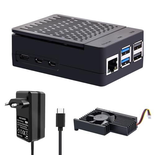 GeeekPi Raspberry Pi 5 ABS-fodral med Raspberry Pi 5 27W 5.1V 5A Power Supply Kit