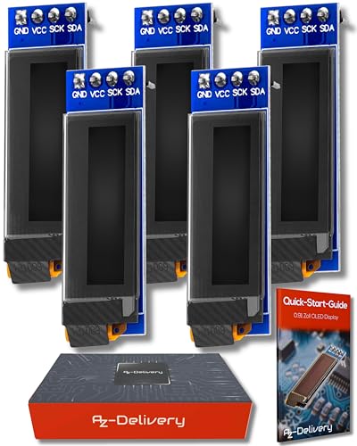 AZDelivery 5 x 0,96 tum OLED 128 x 64 pixlar I2C-Skärm kompatibel med Arduino och Raspberry Pi inklusive en E-Book!