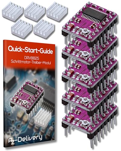 AZDelivery 5 x DRV8825 stegmotormotormodul med kylfläns, t.ex. för RAMPS 1.4, CNC-skärm, 3D-skrivare, Prusa Mendel kompatibel med Arduino och Raspberry Pi