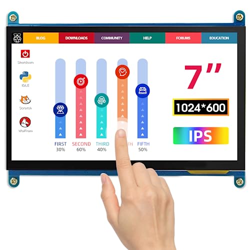 ELECROW Pekskärmsskärm för Raspberry pi 4, 7 tum 1024 x 600 HDMI-skärm kapacitiv pekskärm för Raspberry Pi, Windows