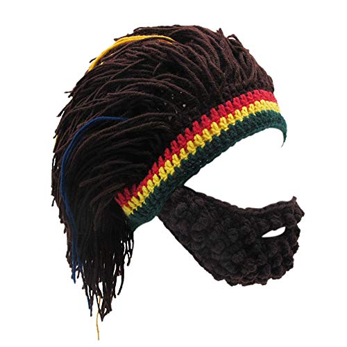 Xinqiao stickade skäggmössor för män reggae hårstil rasta huvudbonad mössa roliga hattar, Kaffe, one size