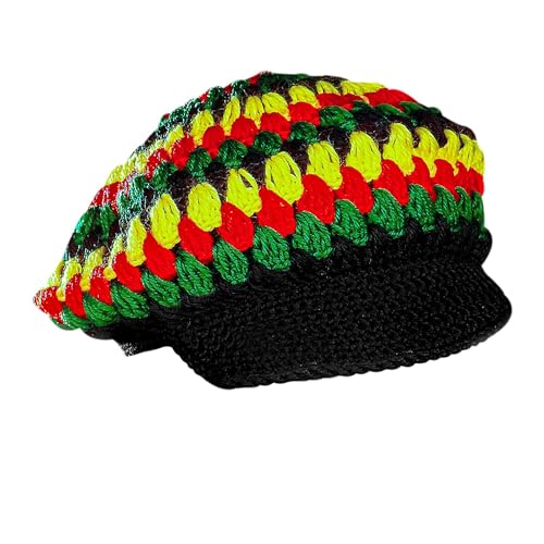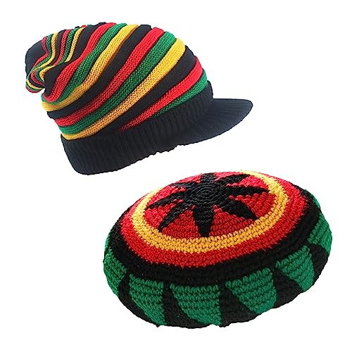 ZffXH Jamaican Rasta Man hatt, 2 st ull stickad regnbåge ullhattar färgglad mössa dödskalle hatt säckig baggy keps vinter höst, 2 st - Regnbåge, L