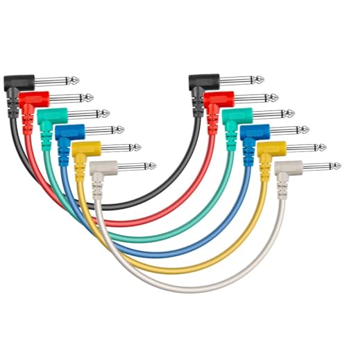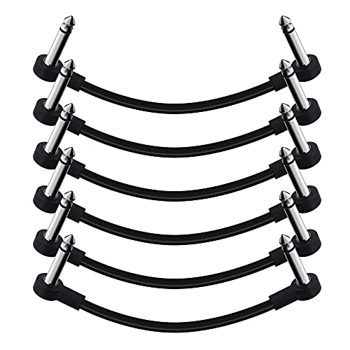 SONICAKE 15 cm gitarrlapp kabel gitarreffekt pedalkablar ljudlösa 1/4 tum rät vinkel TS mono-snören för gitarr/baseffektpedaler svart 6-pack (6 Pack Colour)