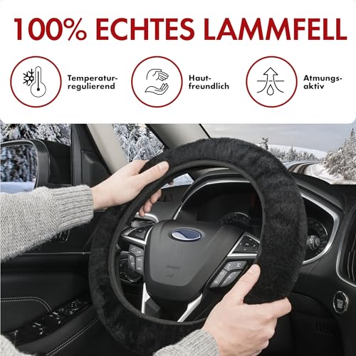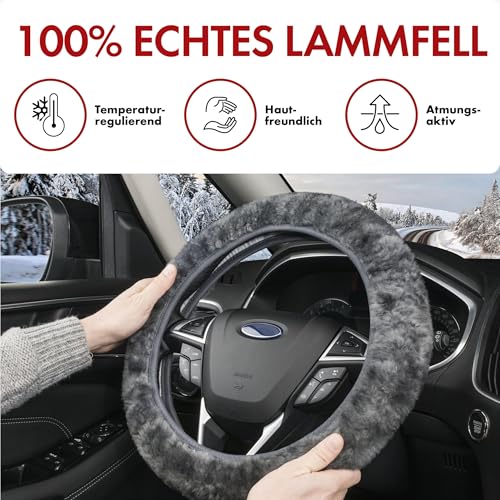 Walser lammskinn, rattmuff bil, 100% lammskinn, rattskydd, bil, rattskydd, päls, rattöverdrag, bil, vintertillbehör, rattmuff vinter, rattvärmare antracit