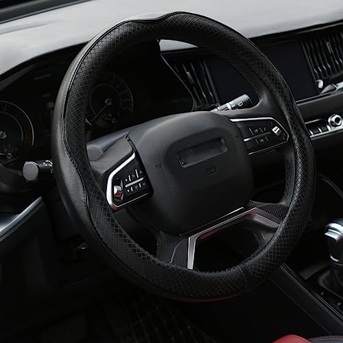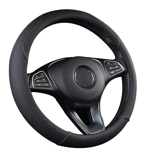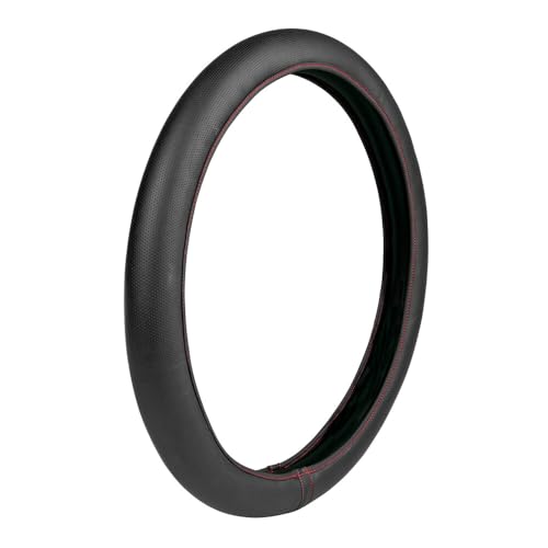 UIHOL Rattmuff läder, Heavy Duty bil rattskydd rattskydd 38 cm/15 tum halkskydd universellt rattskydd rattskydd – svart och röd (+ bilpapperskorg)