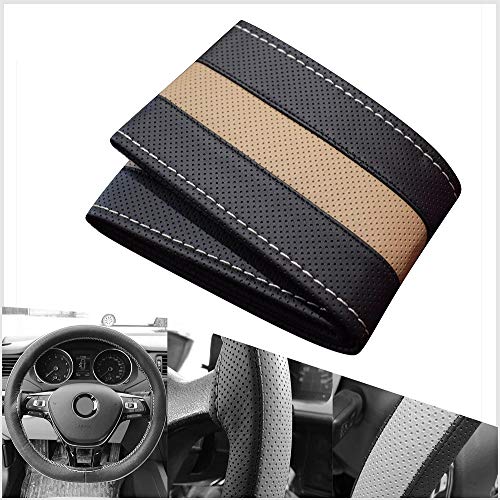 coofig Bilhjulsskydd PU-läder rattmuff universell 14,5 tum/37 cm andningsbart halkfritt skydd interiör tillbehör för bil/lastbil/SUV/skåpbil för flickor pojkar (svart beige-3)
