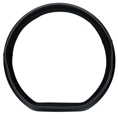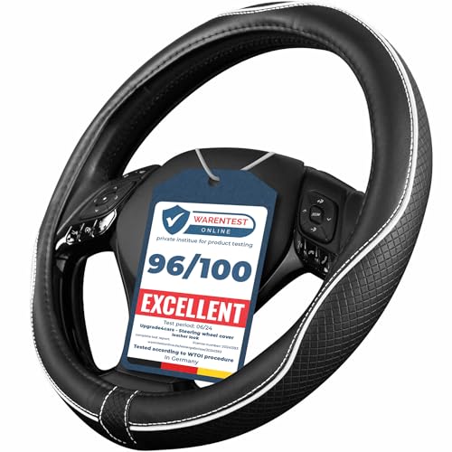 Upgrade4cars Rattmuff, vit/svart, läderutseende, rattskydd i universell storlek 37–39 cm, Rattskydd för sommar och vinter, biltillbehör interiör