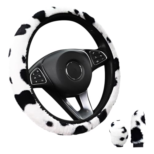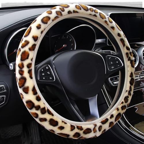 BEISIJIA Leopard rattskydd, universell halkfri vinter varm rattmuff fluffig plysch fordon bil rattmuff skydd passar de flesta bildiameter 36-38 cm (14,17 tum-15 tum)