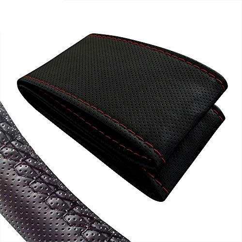 ZATOOTO Gör-det-själv rattmuff läder, bil rattskydd med nål och tråd, halkfri och mjuk, universell storlek 37–38 cm, röd