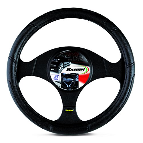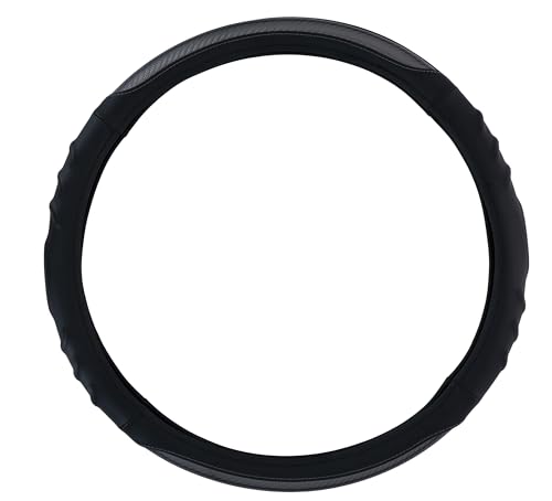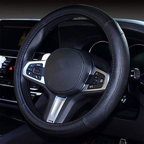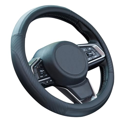 Valleycomfy Svart bil rattmuff mikrofiber läder rattskydd universell storlek 37–39 cm, halkfri, svart linje