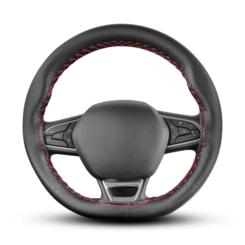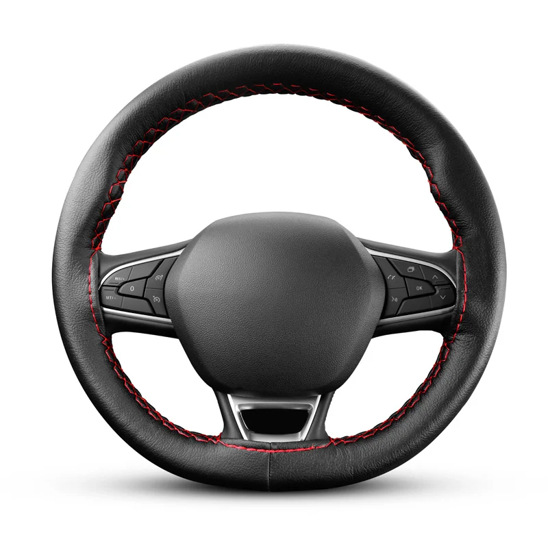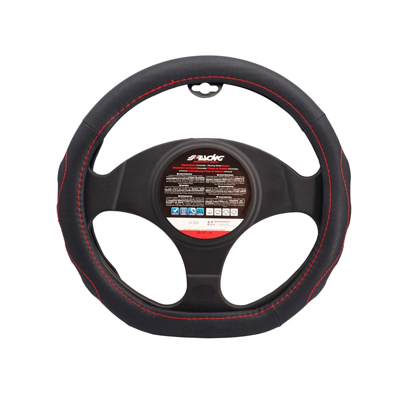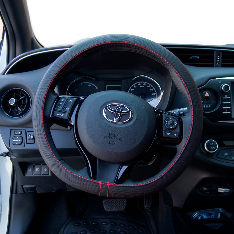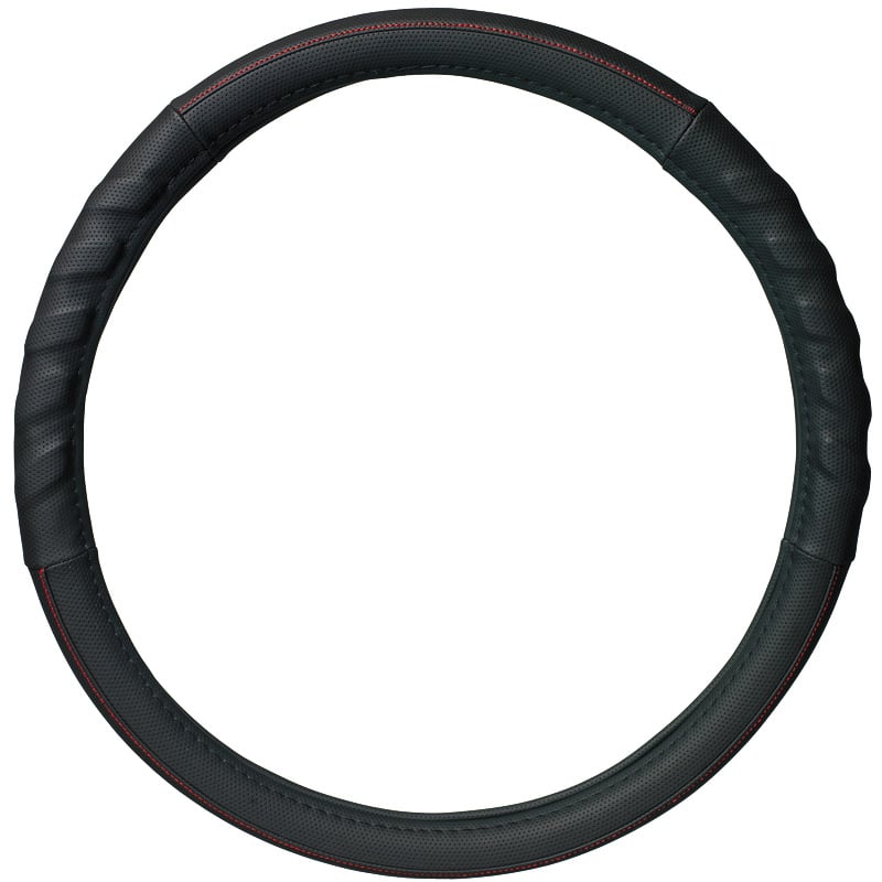 rattöverdrag Soft Skin, svart eco-läder med röd stygn, 37-39cm