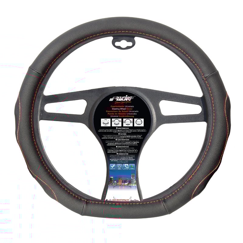 rattöverdrag Carrera Look, svart microfiber med gul markering, 37-39cm