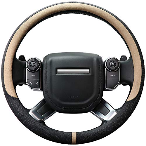 COFIT Ventilerande och halkfritt rattöverdrag i mikrofiber läder med mittmärke L 39,5-41 cm beige och svart