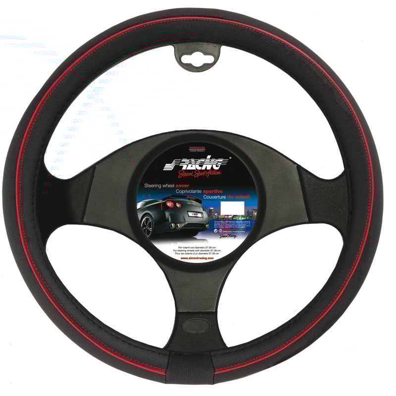 rattöverdrag Speed, svart eco-läder med röd stygn, 37-39cm