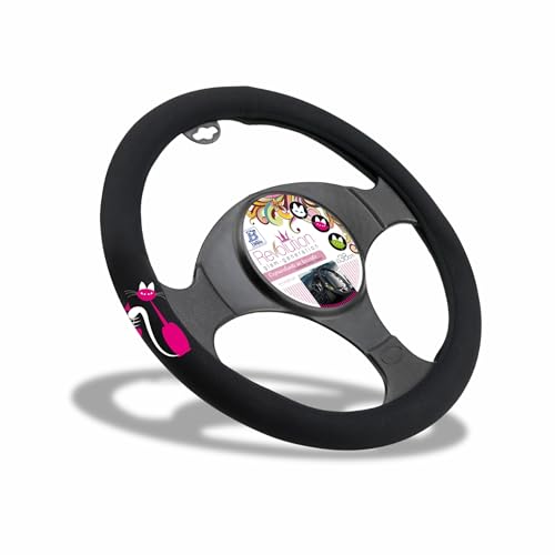Bottari 16284 rattskydd för bil universell väg, färg svart med broderi grå, luktfri, diameter 37–39 cm