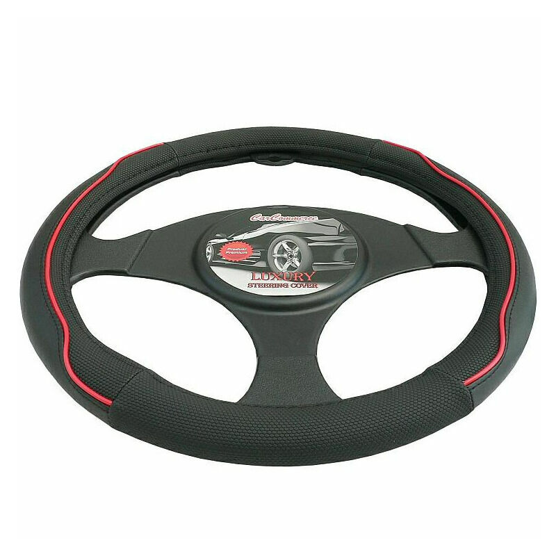 AUTO-STYLE Universellt rattskydd – svart mikrofiber + röd sömnad