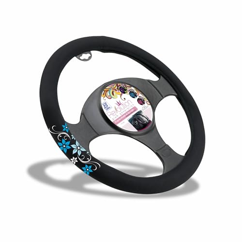 Bottari 16286 rattskydd för bil universell väg, färg svart med broderi blå, luktfri, diameter 37–39 cm
