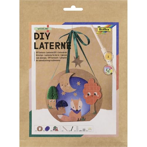 folia 94402 94402-DIY Woodland, ca 19 x 17,5 x 6 cm lyktor pysselset kan användas som björn eller räv i skogen på natten, inklusive LED-ljus, 2 batterier och självhäftande dyna, papper, flerfärgad