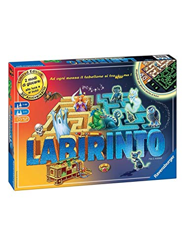 Ravensburger - Labyrinth Glow in The Dark, brädspel för hela familjen, 2–4 spelare, presentidé för barn 7+ år, italiensk upplaga