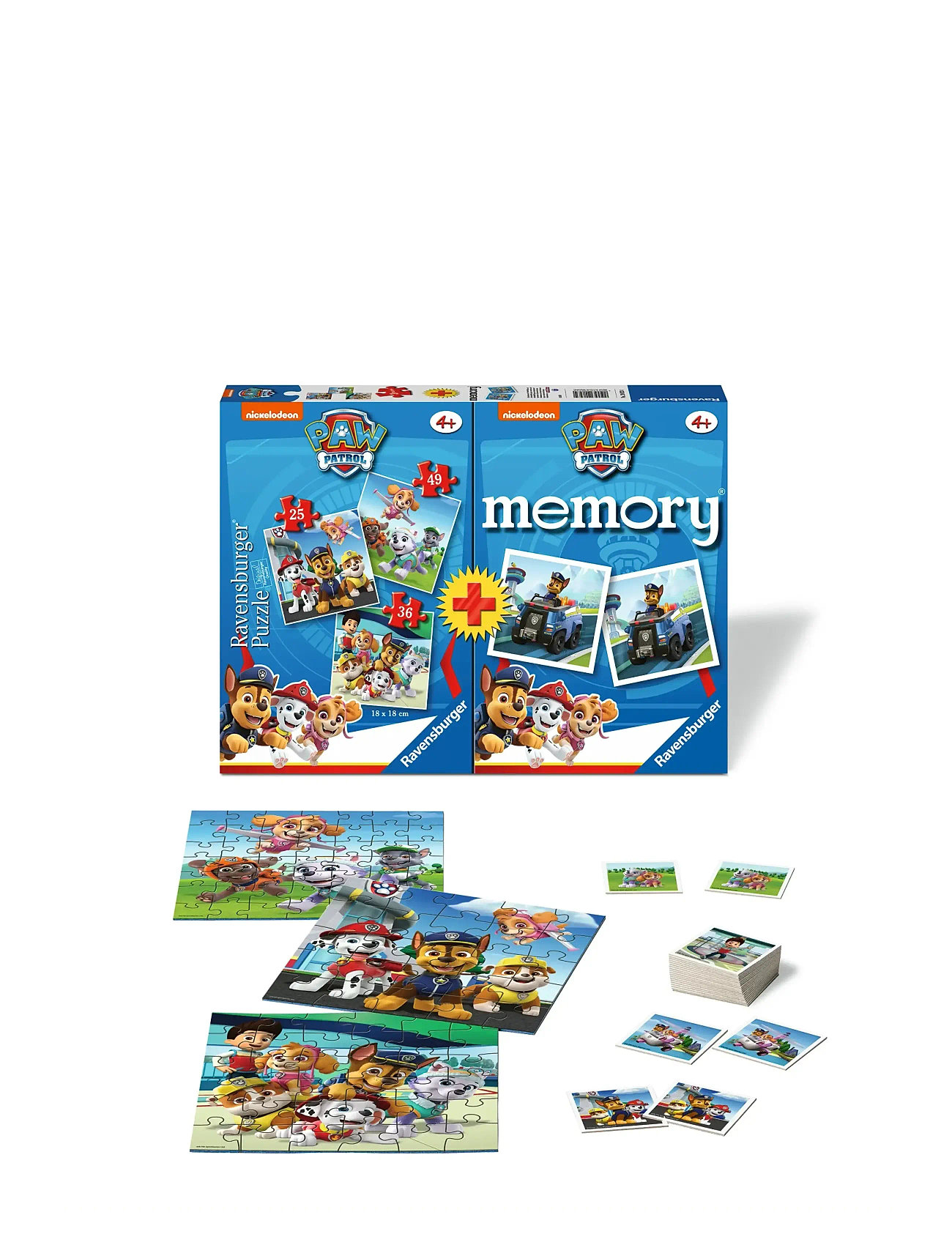 Ravensburger - Multipack Paw Patrol 2, Memory® 48 Kort + 3 Barnpussel, 25/36/49 bitar, 4+ år