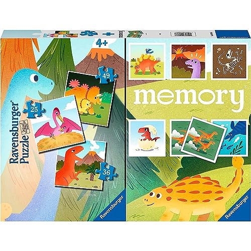 Ravensburger - Dinosaurier, Memory® 48 kort + 3 barnpussel, 25/36/49 bitar, 4+ år