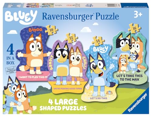 Ravensburger Bluey 4 Large Shaped Jigsaw Puzzles (10, 12, 14, 16 Piece) for Kids Age 3 Years Up