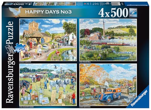 Ravensburger Happy Days No.3 Countryside Nostalgia 4x 500 Piece Jigsaw Puzzles for Adults and Kids Age 10 and Up