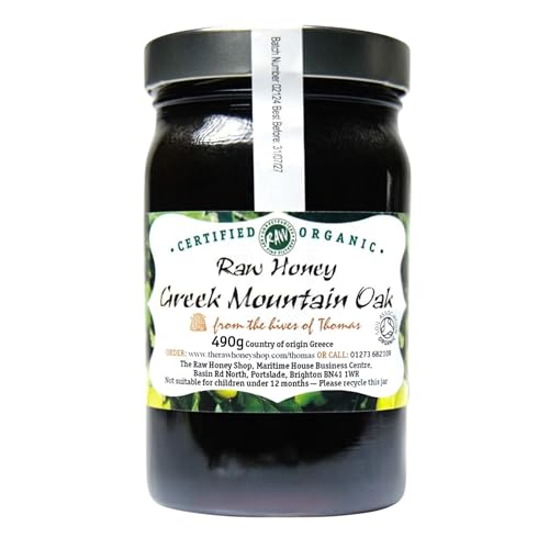 Thomas' Raw grekisk ekologisk bergsekhonung | antibakteriell bergshonung | tjock och opasteuriserad | enkelt ursprung | The Raw Honey Shop | (490 g)