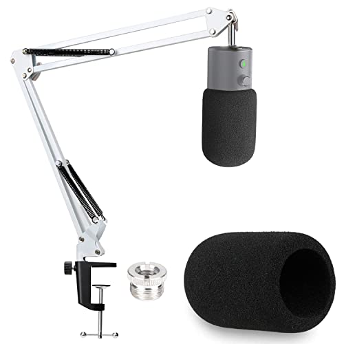 YOUSHARES Vit Mic Boom Arm Stand med Pop Filter - Mic Stand med Foam Cover Vindruta Kompatibel med Razer Seiren Mini Streaming Microphone