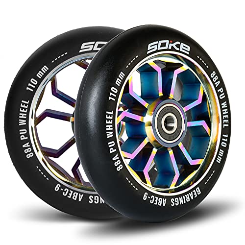 SOKE Scooter hjul 1679, 5 x 12 x 12 cm, två stycken, guld, hållbar, för barn, ungdomar, vuxna, proffs | sparkcykel, hjul, lämpliga för razor/cox/albott och de flesta freestyle skotrar