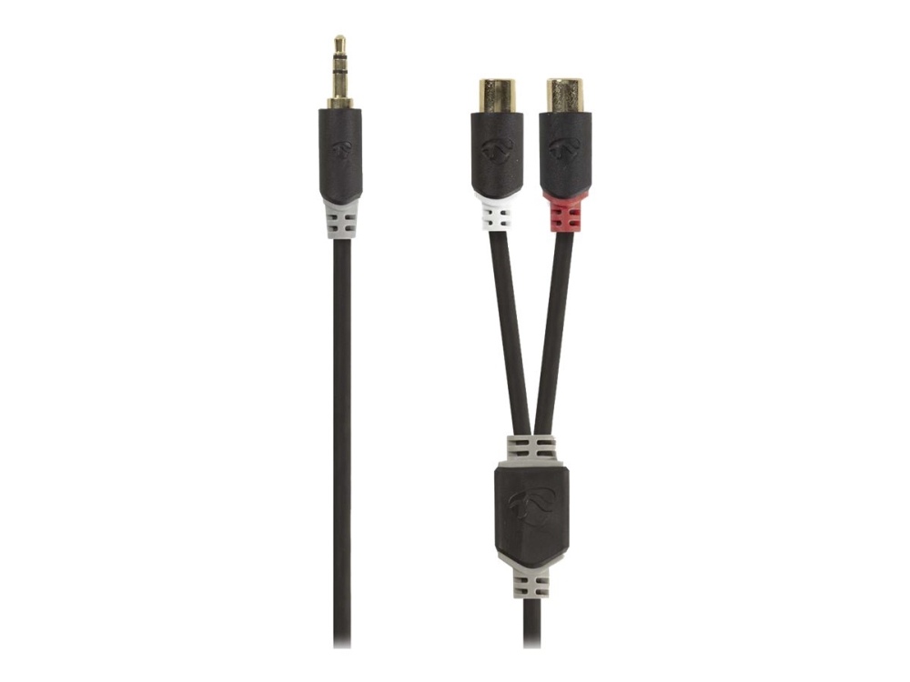Nedis stereokabel, 1x 3,5mm hane till 2x RCA hona, 0,2m