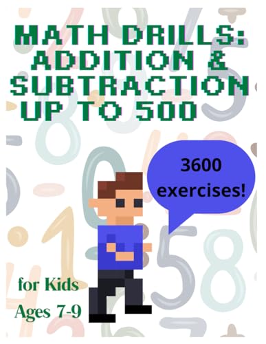 Math Drills: Addition & Subtraction up to 500: 3600 exercises ! for Kids Ages 7-9: 7 Levels Math Challenge | 88 Days of Timed Tests for 2nd & 3rd ... with Progress Tracker & Bonus Math Riddles