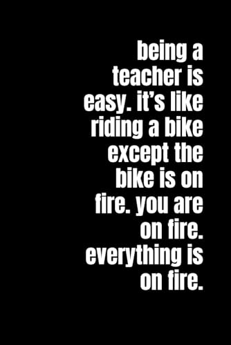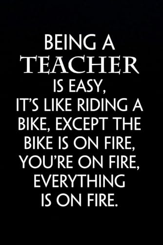 Being a Teacher Is Easy. It’s Like Riding a Bike. Except the Bike Is on Fire. You’re on Fire. Everything Is on Fire.: A Hilarious 6x9 Lined Notebook ... Funny Low Content Journal Gift for Educators