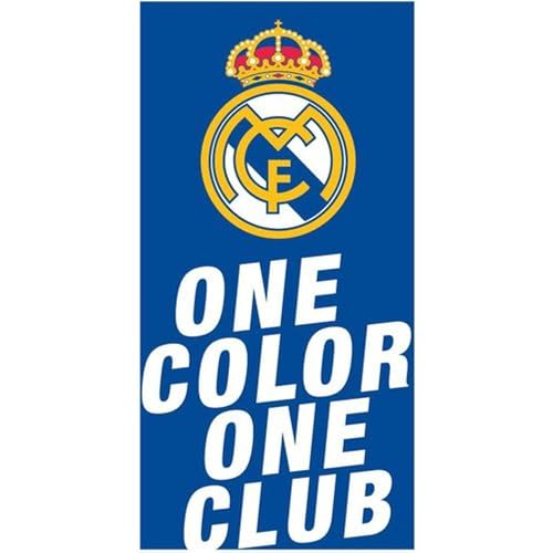 Officiell handduk från Real Madrid med klubbvapen och ikoniska färger - Real Madrid strand- och badhandduk perfekt för fans av det vita laget, med stil och komfort.