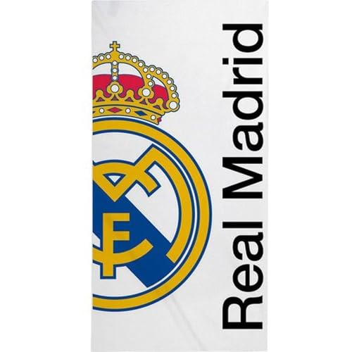 Real Madrid handduk - Officiell handduk med exklusiv design, sköld och klubbfärger, perfekt för strand, pool, bad eller sport, praktiskt tillbehör för fotbollsfans