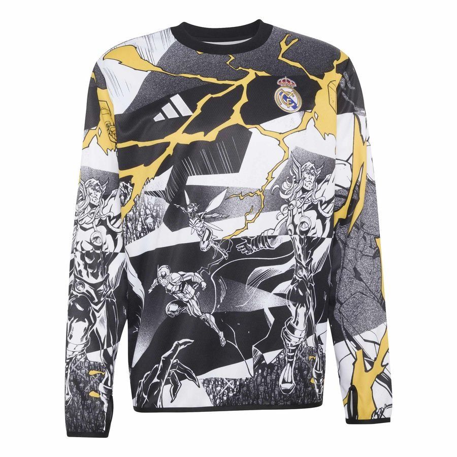 Real Madrid X Marvel Tränings T-Shirt Pre Match Warm Top - Vit/Svart/Guld - adidas, storlek Large