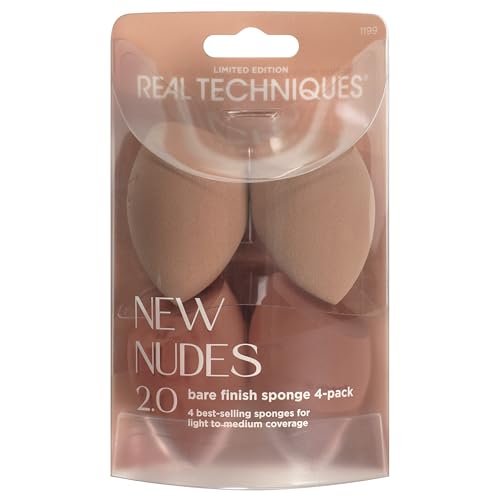 Real Techniques New Nudes 2.0 Bare Finish Makeup Sponge 4-Pack, Makeup Blending Sponges for Liquid & Cream Foundation, Skin Tints & Illuminators, Cruelty-Free