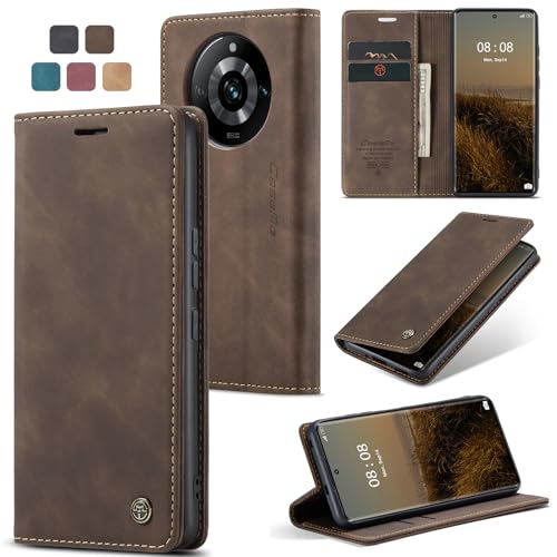 Cracedily Skal för Realme 11 Pro 5G / Realme 11 Pro Plus 5G Case, Läderfodral Plånbok Skal, [TPU-skal] [Kortplatser] [Kickstand] stöttåligt folio flipfodral Wallet Leather Cover, Brun