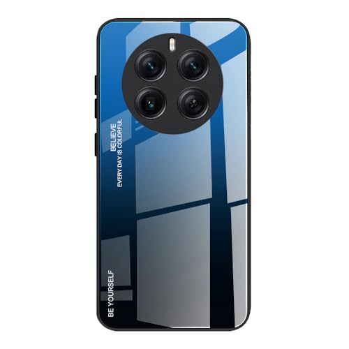 DEDUX fodral för Realme 12 Pro Plus 5G/Realme 12 Pro+ 5G, gradient härdat glas baksida fodral och stötsäker silikon TPU skyddande telefonfodral (blå/svart)