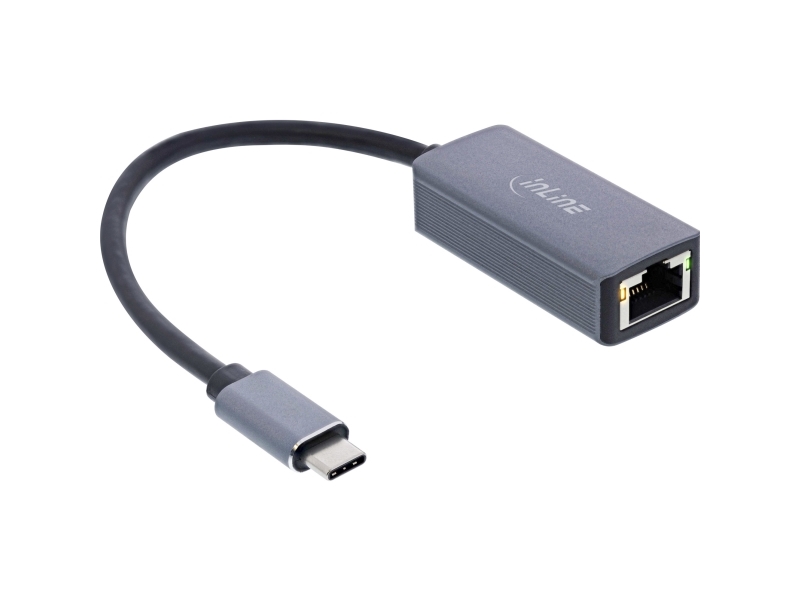 Inline 33380M, Usb Type-C, Rj-45, Hankoppling, Grå, Realtek Rtl8156, Hankoppling