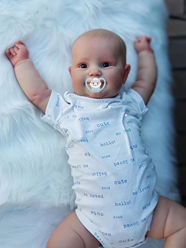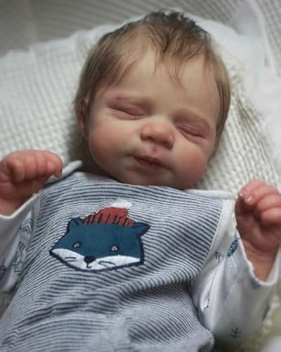 Lonian 19", Reborn, baby, pojkdocka, stängda realistiska ögon, mjuk vinylkropp, handgjord, nyfödd baby, Reborn-docka som ser ut som en riktig bebis (bomullskropp)