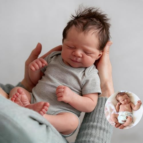 Miaio Reborn Baby Doll Pojke 7-tums silikondocka Mini Realistiska Newborn Baby Dolls Silikon Helkroppsspänningsavlastning för vuxna Handgjorda med matnings- och badtillbehör (1 docka + 2 set kläder)