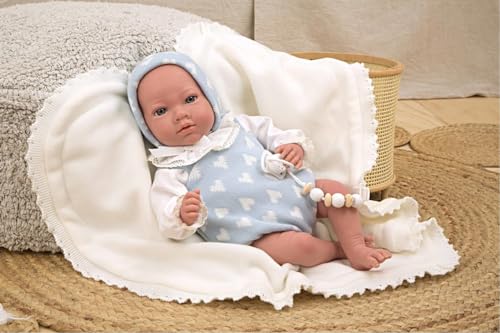 Arias - Reborn Ian docka 40 cm med vit filt, baby med Vinylkropp, blond blond vit och rosa ropita napp och napp, leksak för barn Från +3 år (ARI98142)