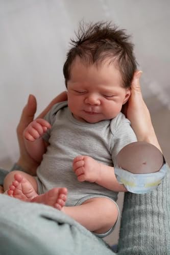 Lonian 19" Docka Reborn pojke realistisk stängda ögon mjuk vinylkropp handgjord nyfödd baby ser ut som en riktig bebis (silikonkropp)