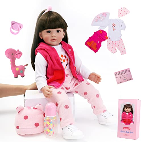 HEHUZY Verklighetstrogna Reborn docka 23 tum 57 cm babydocka som riktig baby silikon baby flicka med mjuk tygkropp