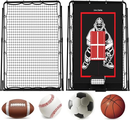 AKOZLIN Softball volleyboll lacrosse studsande studs ryggnät, justerbar med 5 vinklar, 15 x 10 cm med strike zon rebounder nät, bärbar fotboll rebounder, studsvägg nät