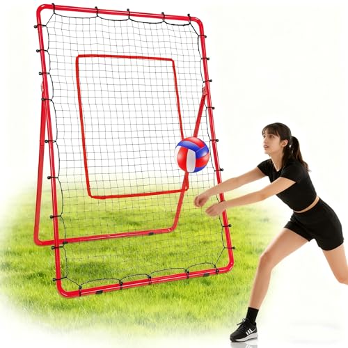 UISEBRT Fotboll Rebounder Mesh Sports blåvägg Kicker fotbollsträningstillbehör med 5 justerbara steg, röd stålram, 100 x 100 x 65 cm
