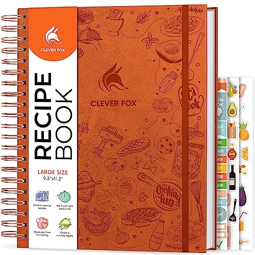 Clever Fox receptbok spiral – gör din egen familj kokbok – tomt recept anteckningsbok organiserare – tom matlagningsdagbok att skriva i recept – stor storlek, 23,6 cm x 28,4 cm, inbunden (orange)
