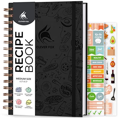 Clever Fox receptbok spiral – gör din egen familj kokbok – tomt recept anteckningsbok organiserare – tom matlagningsdagbok att skriva i recept – medelstorlek, 16 x 21 cm, inbunden (svart)